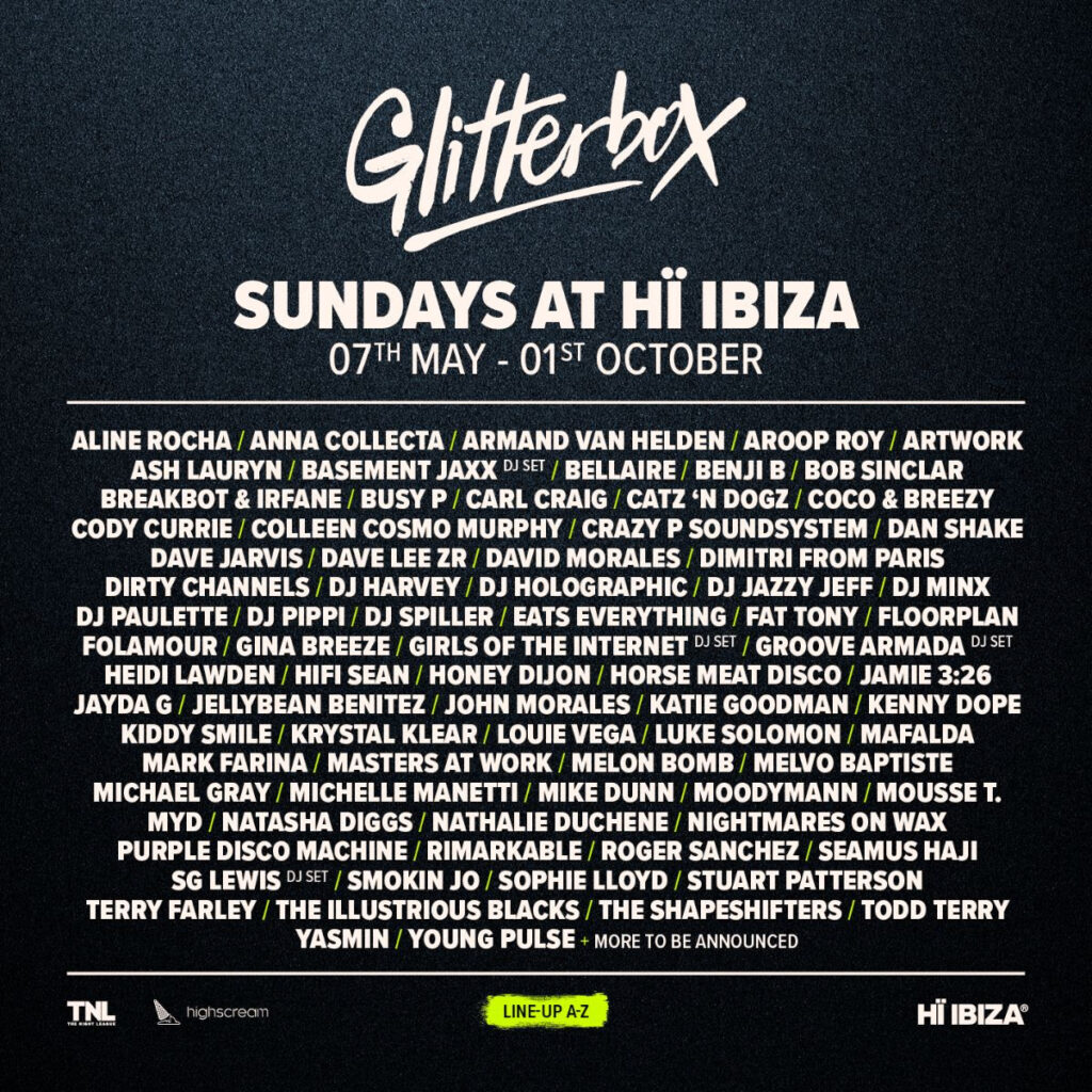 In May, Glitterbox makes its return to Ibiza super-club Hï Ibiza for its sixth season, securing its spot as one of the club’s longest-running and best-loved residencies. The line-up reveal demonstrates Glitterbox’s unrivalled pull for talent to the island and brings along the night’s iconic performers to dominate Sunday nights for a mighty 22 weeks.