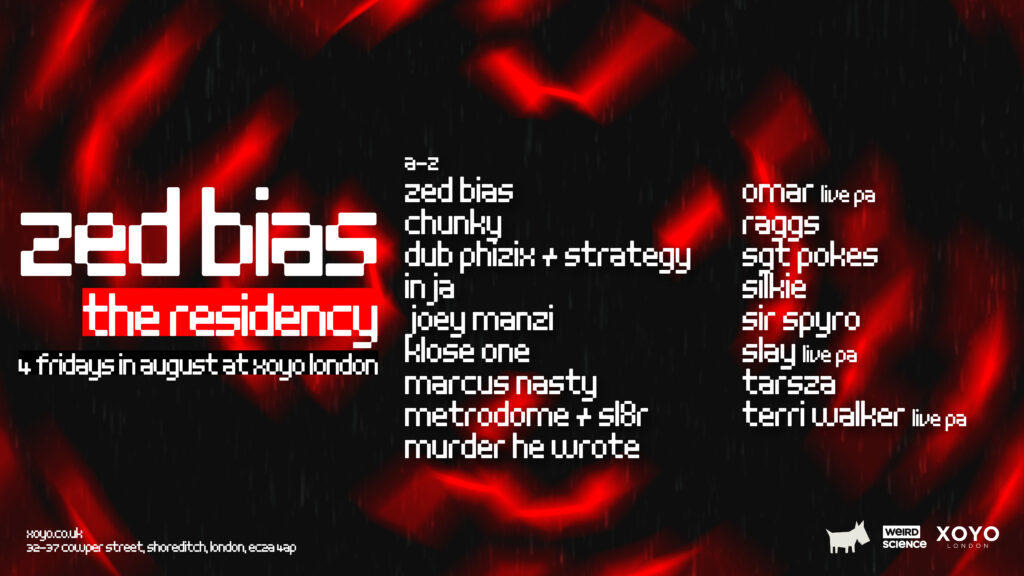 Promising a month of the finest UKG, Drum & Bass, Dubstep and UK Funky, revered DJ/Producer Zed Bias continues celebrating his 25-year tenure with the hallowed XOYO Friday Night Residency this summer.