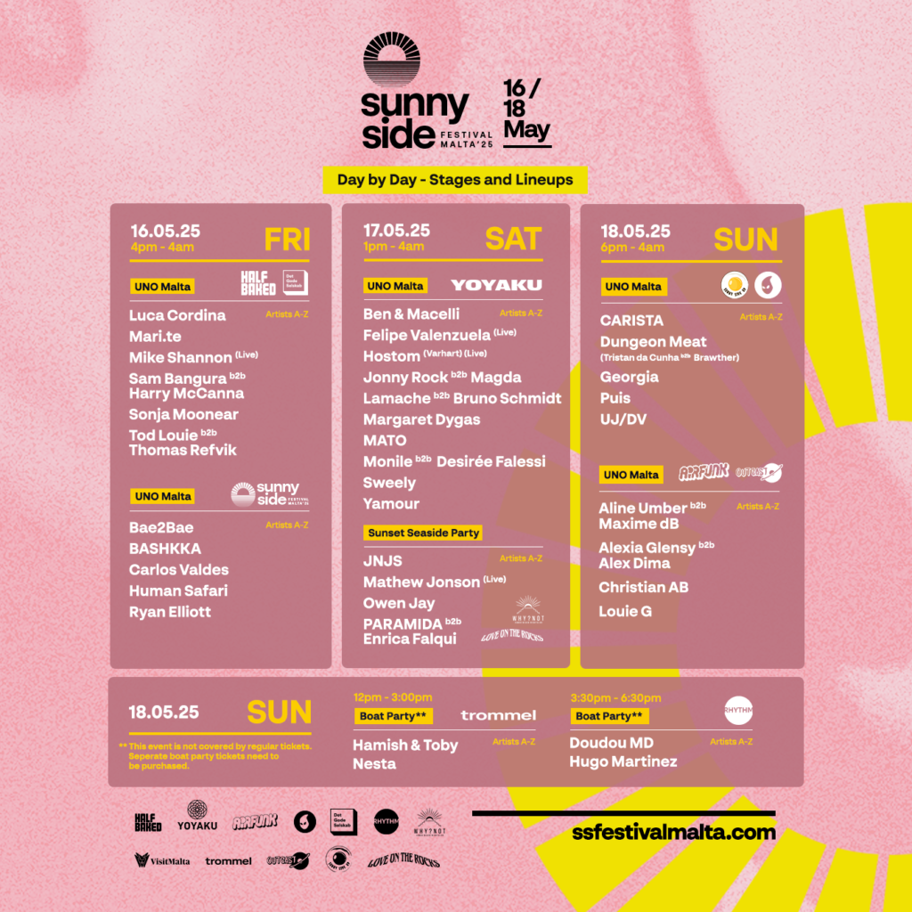 A unique Mediterranean escape Sunny Side Festival 2025 is fast approaching and today completes its Stages and Boat Parties with a cultured line up and many cutting-edge talents from across the house and techno spectrum. This intimate and cultured blend of electronic music unfolds on the beautiful island of Malta from 16-18th May 2025 with already announced names including Sweely, CARISTA, Dungeon Meat, Christian AB, Hamish & Toby, Ryan Elliot, Magda, Margaret Dygas, BASHKKA, Mathew Jonson, Sonja Moonear and many more.
