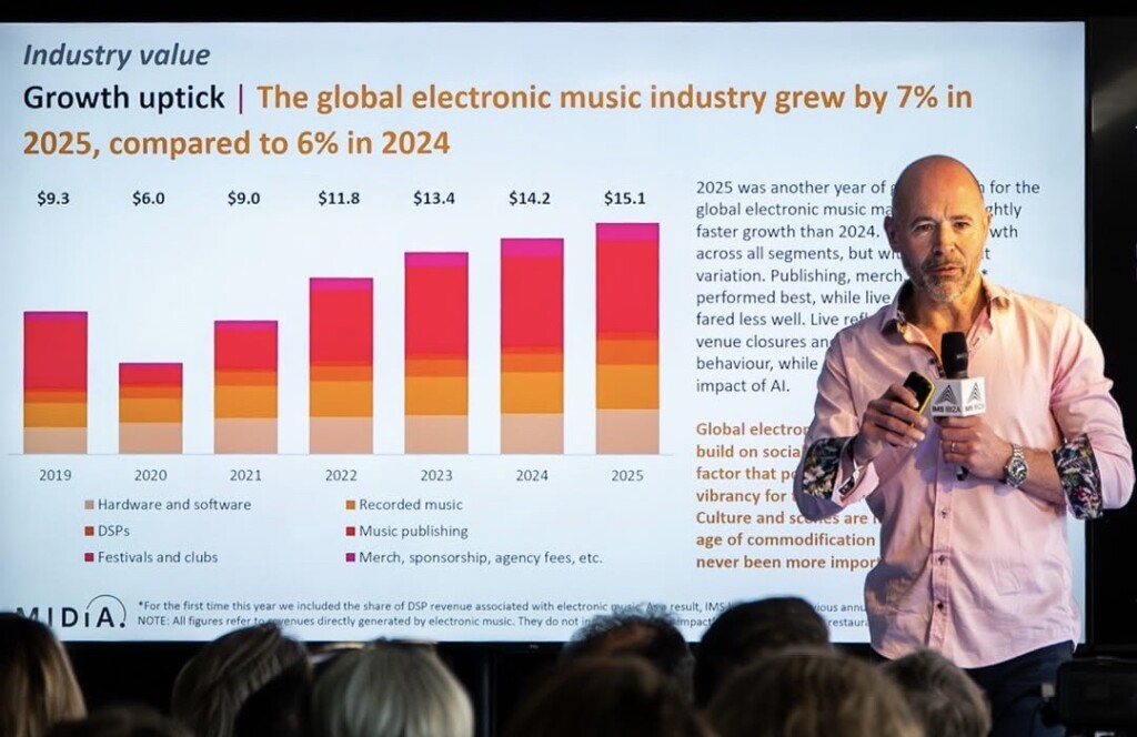 The summit was opened by co-founders Ben Turner, Danny Whittle and Pete Tong, and hosts Jaguar and Katie Knight. Then came a big highlight, as Mark Mulligan presented the new IMS Business Report, a deep dive into the economic and cultural dynamics of the global electronic music industry.